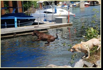 Twins and water-lovers, dock-jumpers, and search & rescue practicers. They just turned five years old. I can't believe it. They are still puppies to me!